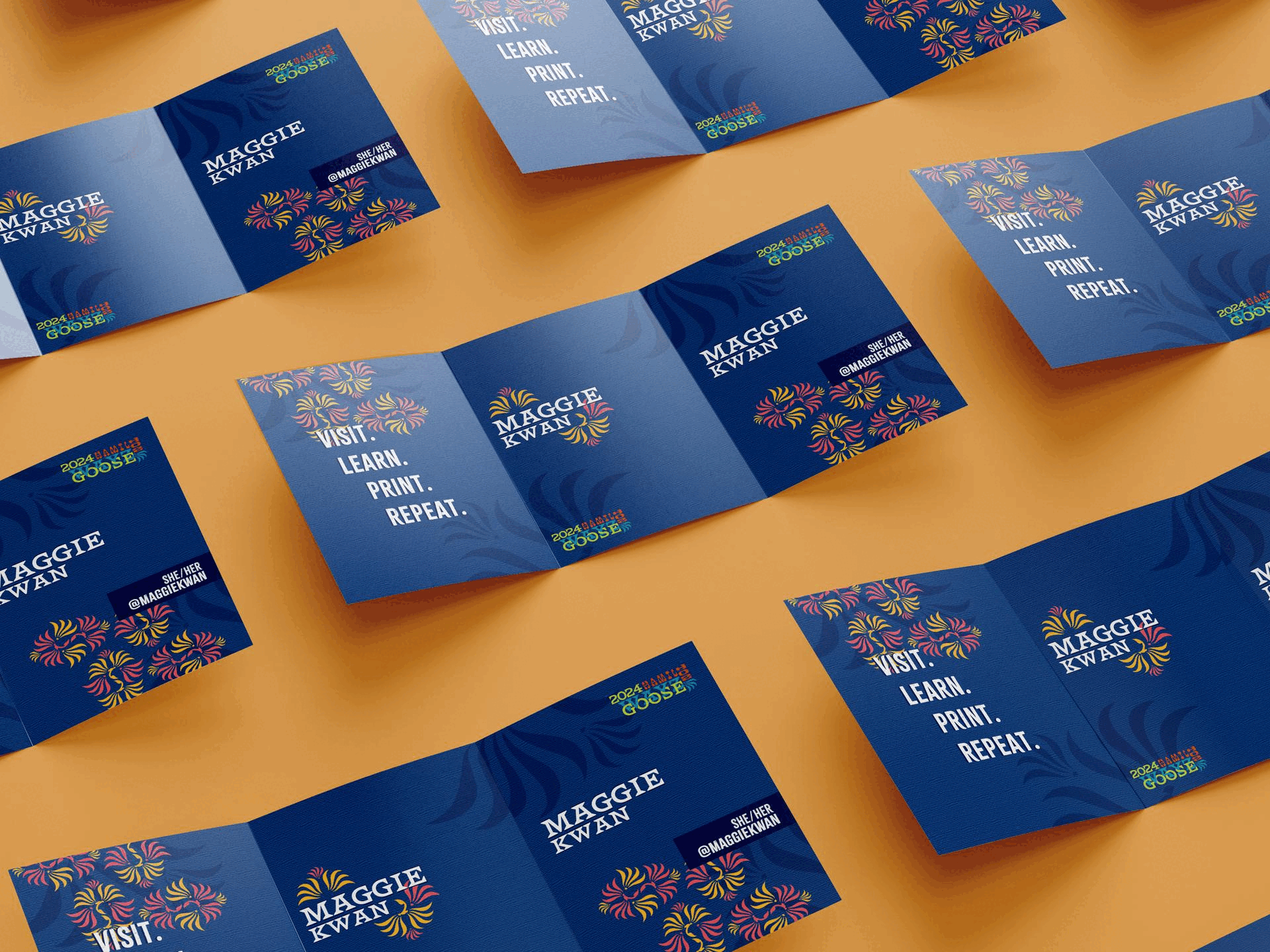 I created a vibrant and dynamic logo and utilized bold text to display important information and enhance the guest’s experience. Throughout the design, ornamental symbols that resembled goose were used to represent the imagery of goose eggs.